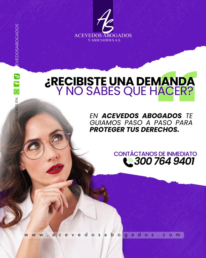 Los interesados pueden comunicarse de inmediato al 300 764 9401 o visitar nuestras redes sociales @acevedosabogados para conocer más sobre los servicios disponibles.