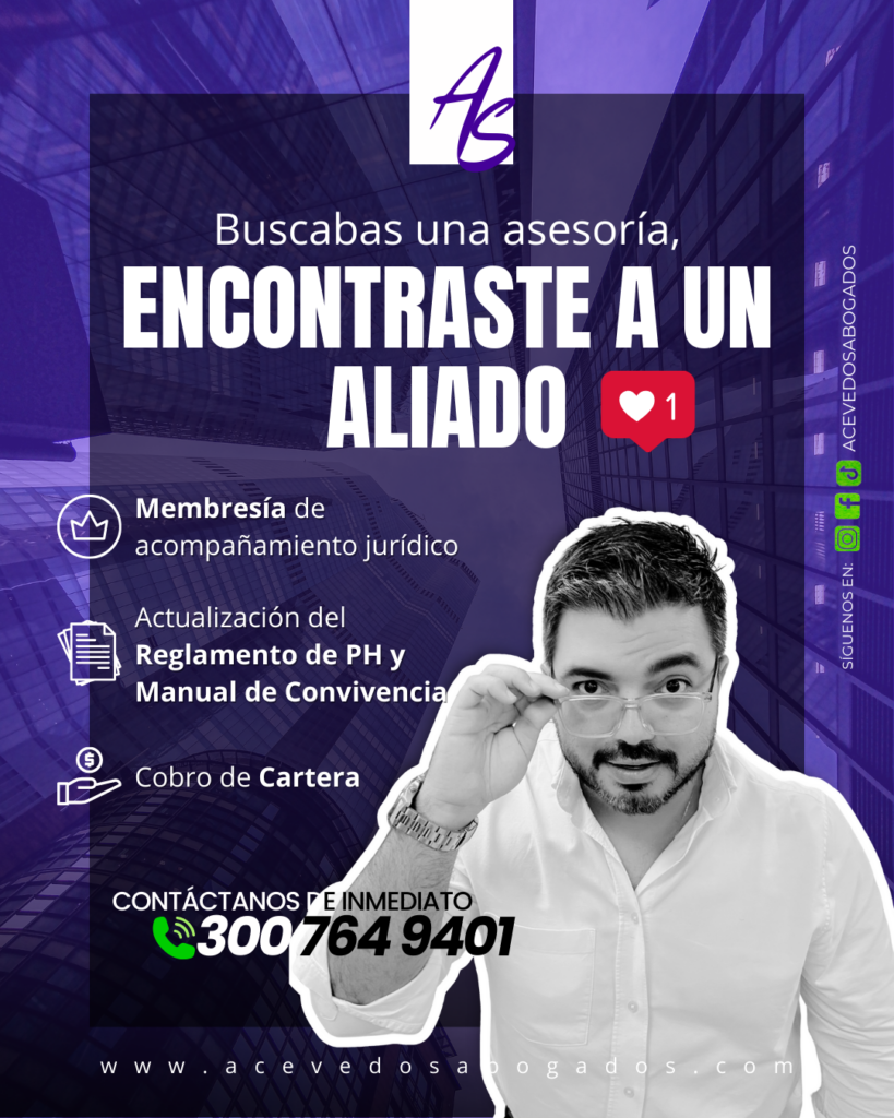 Con esta propuesta, Acevedos Abogados reafirma su lema “Tu copropiedad es nuestra prioridad”, consolidándose como un aliado estratégico en la resolución de conflictos, la actualización normativa y la protección de los intereses de las comunidades.